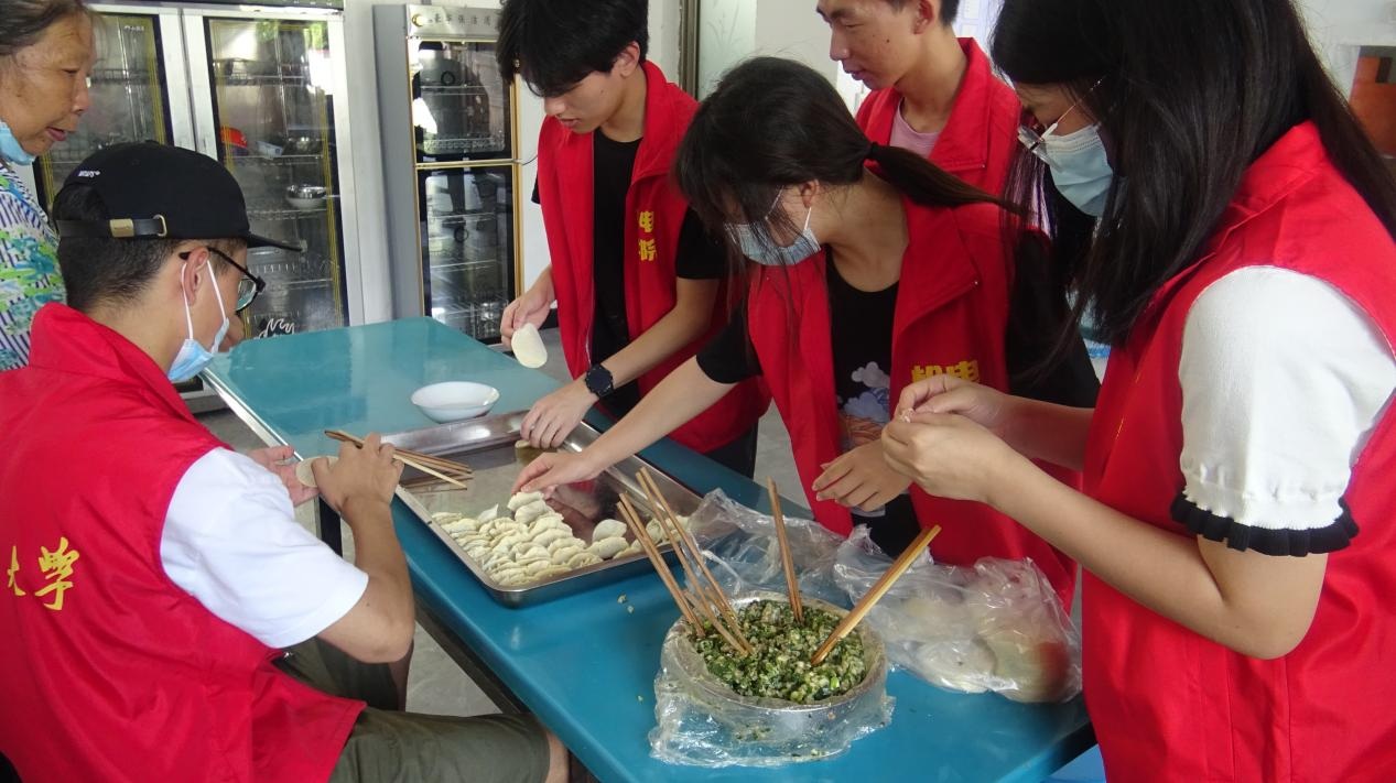 图为实践队员为敬老院的老人包饺子,给子女不在身边的老人送去温暖。中国青年网通讯员 康宏柳 摄