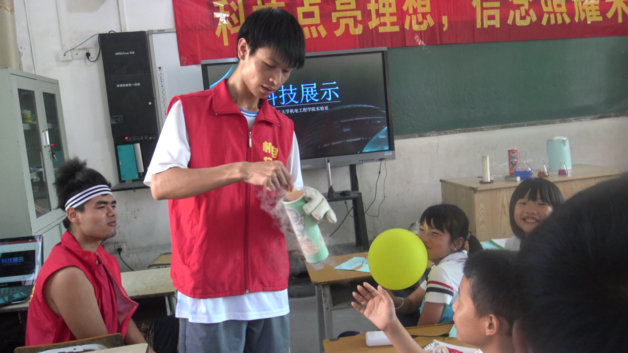 中国青年网赣州7月8日电(通讯员 康宏柳)为了响应国家科技创新的发展理念,帮助小朋友们树立创新意识和培养实践能力,7月5日,江西理工大学机电学院“三下乡”实践队来到南坑中心小学,为当地的小朋友们开展了生动有趣的科技科普活动。